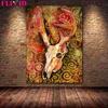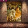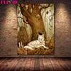 The White Deer Spirit and the White Wolf In the Forest "Retro Mural Art, Oil Painting, Magical Animal Art Poster