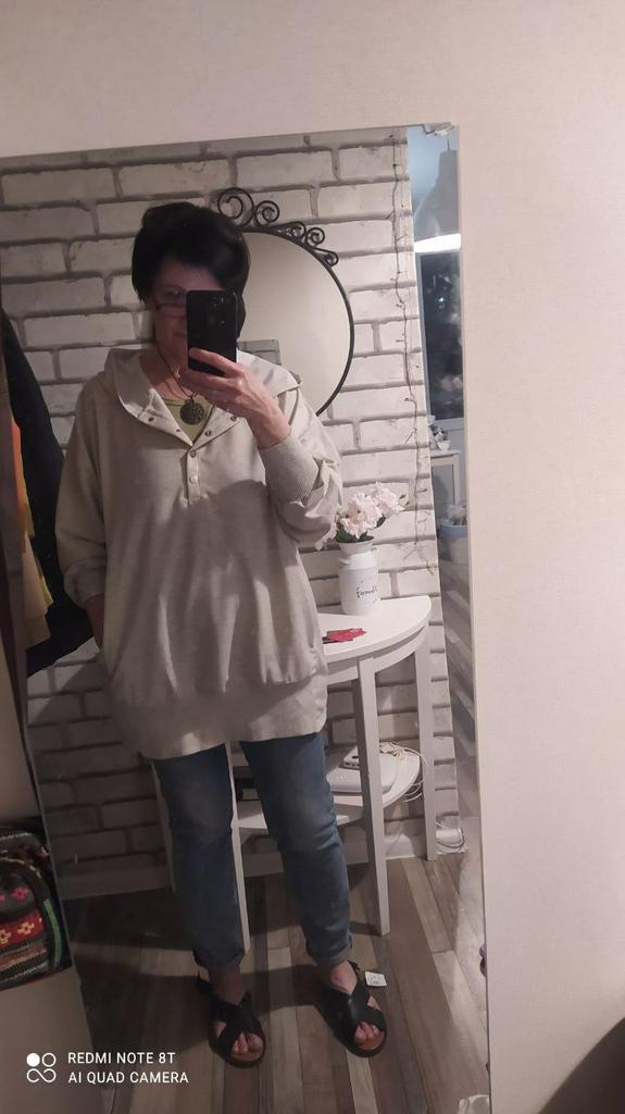 I ordered a white sweatshirt. The quality is good, just right for the summer, to wear in the evenings or in cool weather. For my size 54, L is loose, the neck is a little wider. I recommend it.