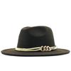 Black Wool Felt Jazz Fedora Hats Belt Buckle Decor Women Unisex Wide Brim Panama Trilby Cowboy Cap Sunhat