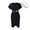 Large Size Women Summer Fashion Solid Dress Ladies Sexy One Piece V Neck Slit Dress with Belt