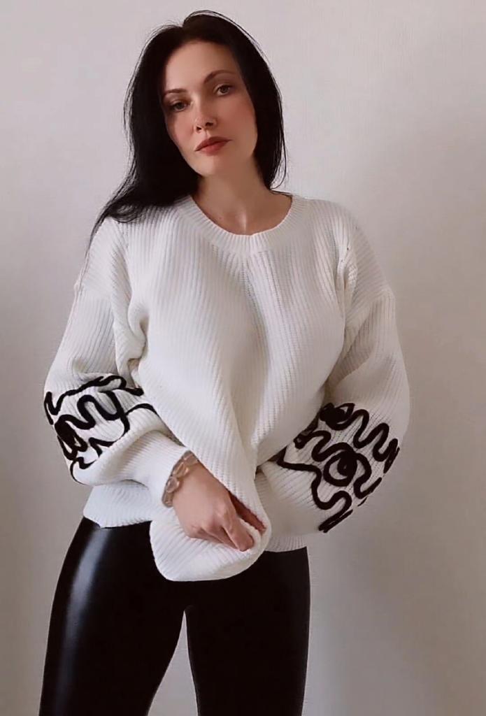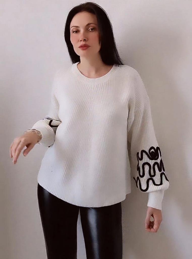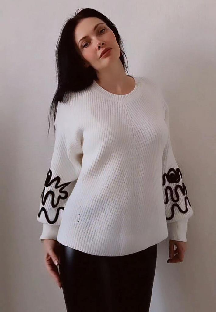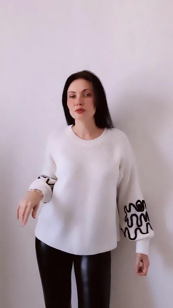 This is a very nice sweater, size 116, and the sleeves are so original, it looks very impressive..