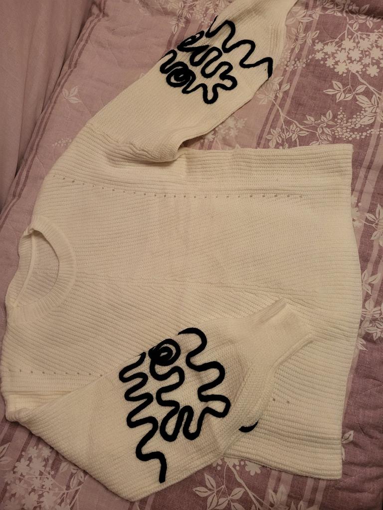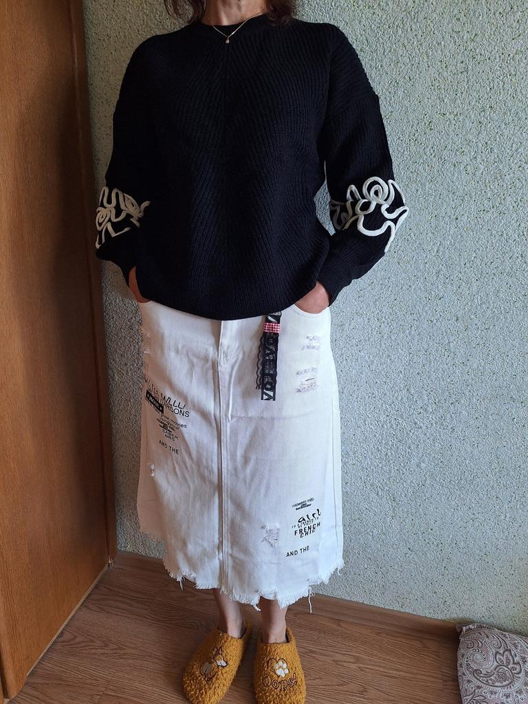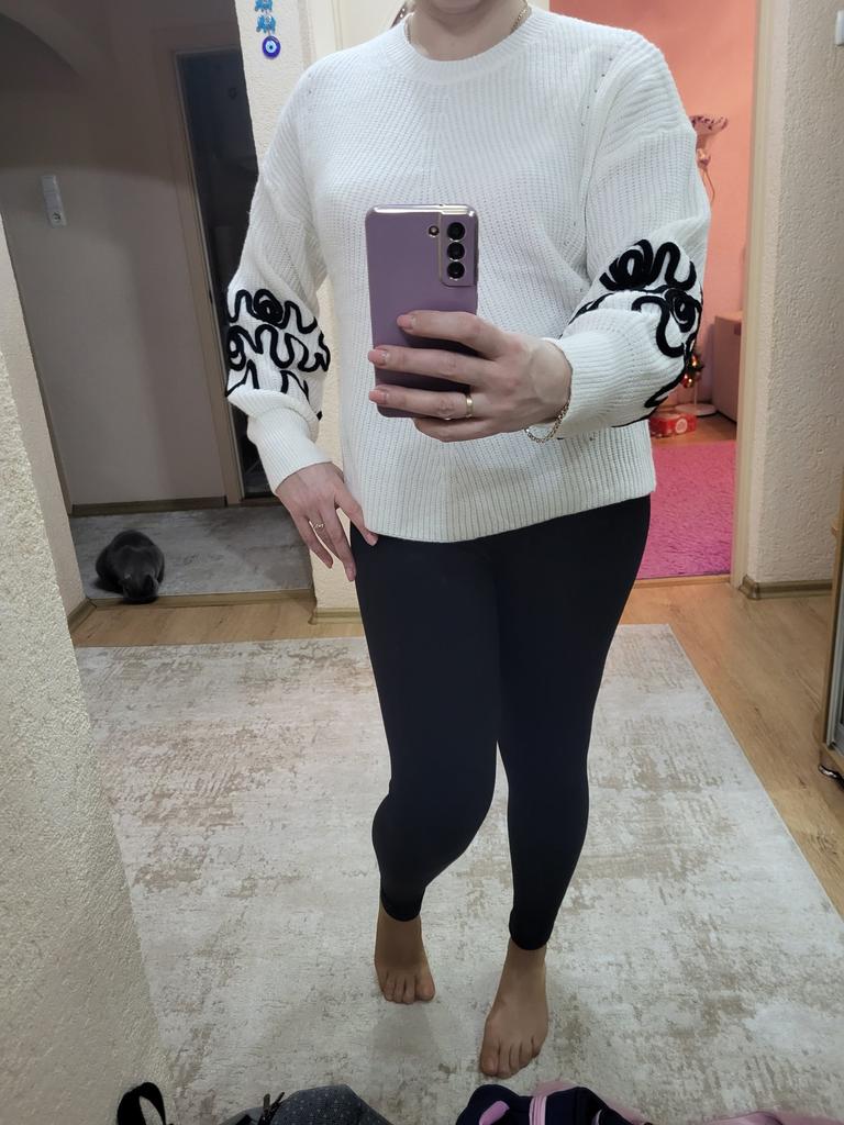 Nice cute sweater. The quality is nice. For 50 sizes I could have taken the M-ku too. The sweater is quite spacious. The sleeves are even a little long. But they are wide and slouchy. Looks good.