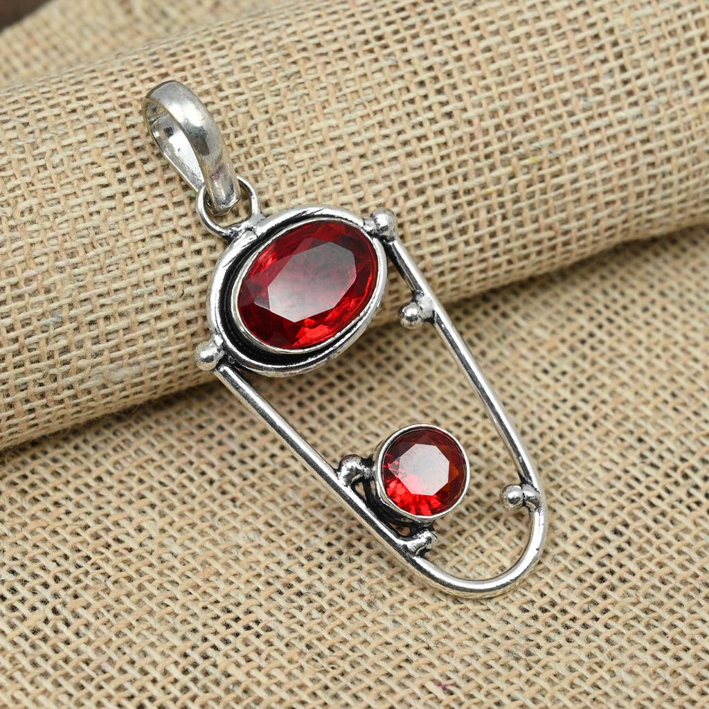 Red Garnet Gemstone 925 Sterling Silver Handmade Precious Pendant Jewelry For Her