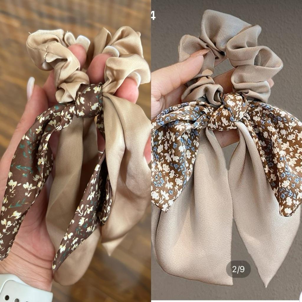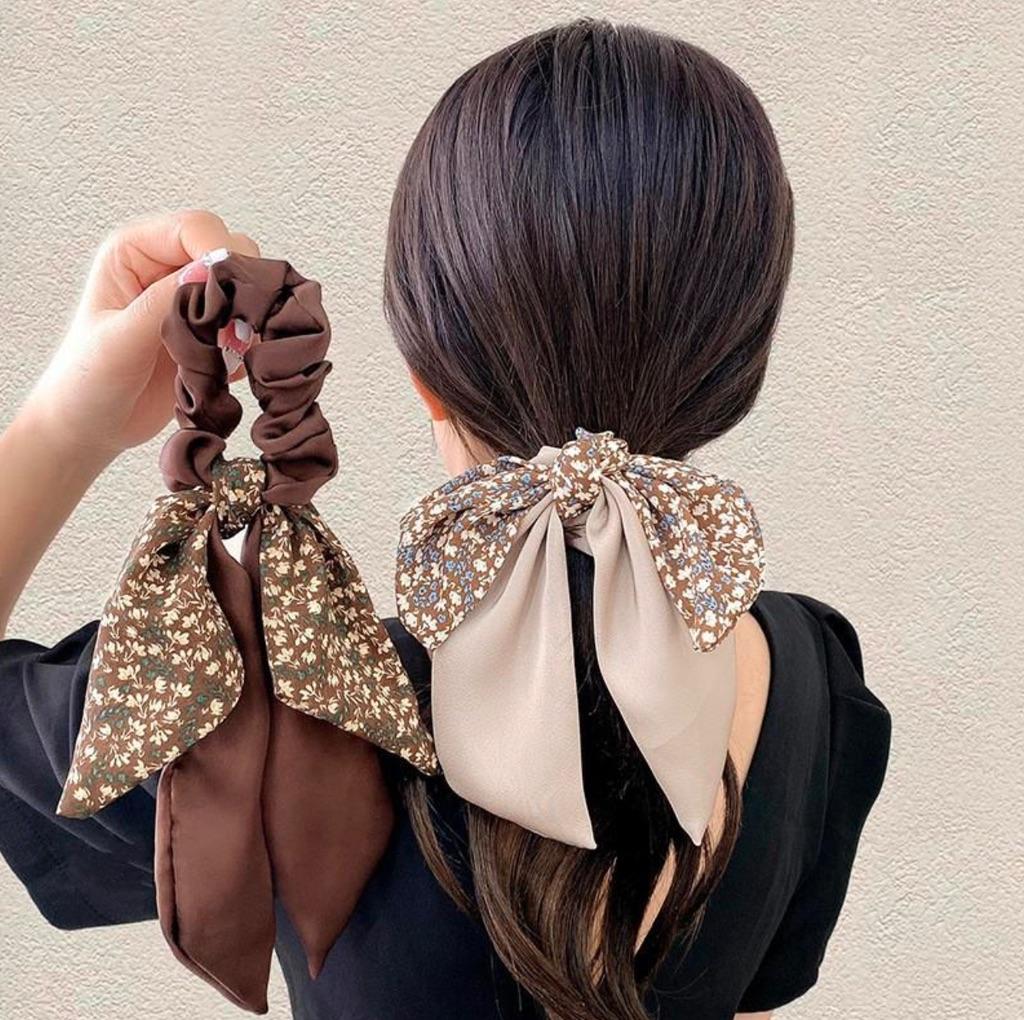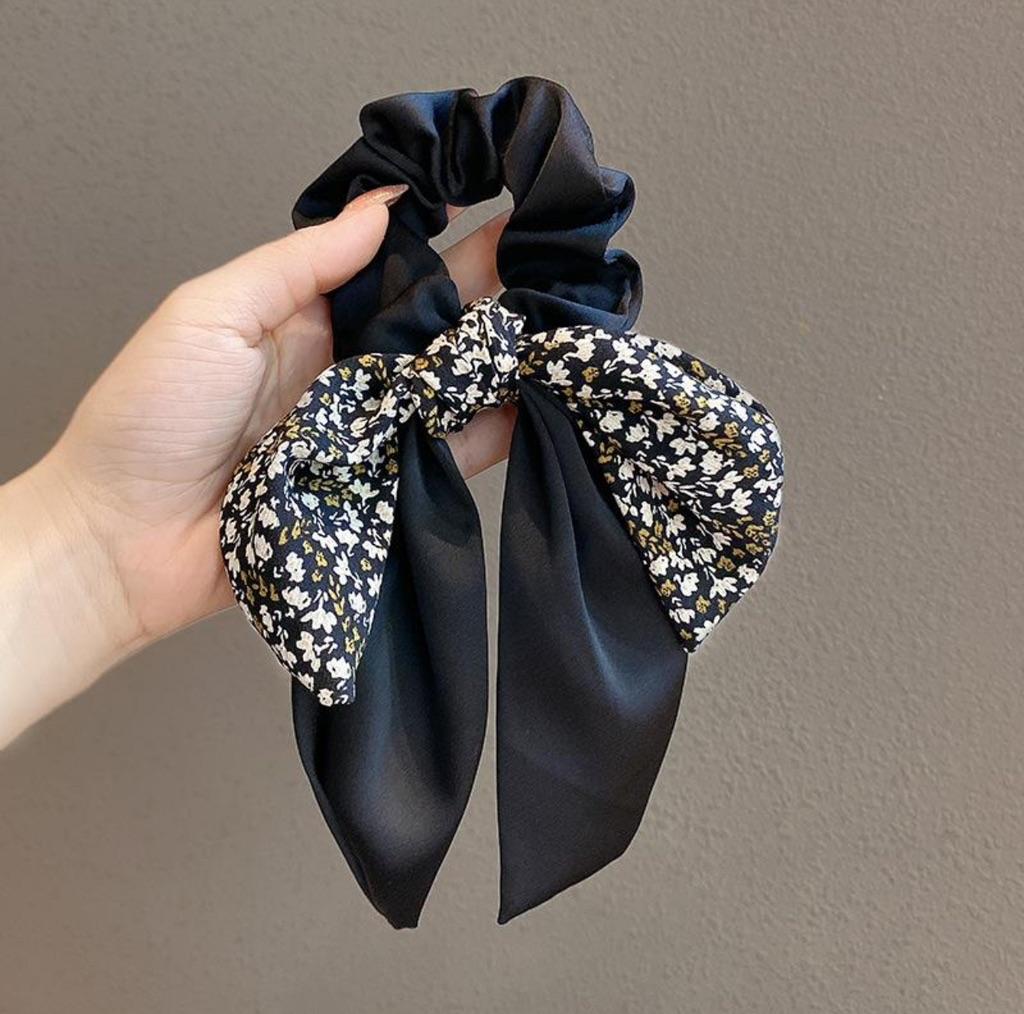 Ponytail Ribbon Bow Women Scrunchies Knotted Bowknot Hair Ties Floral Print Sweet Elastic HairBand Hairs Accessories