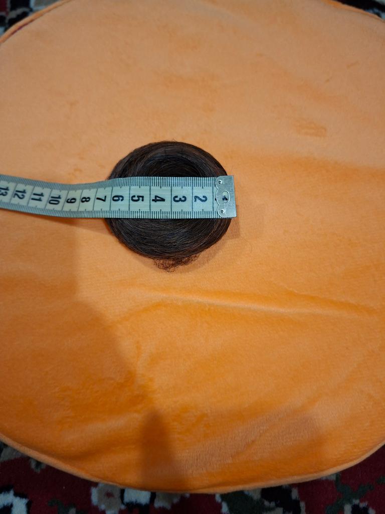 It's just a hair tie with hair, about 4 cm in diameter. There is no bun!