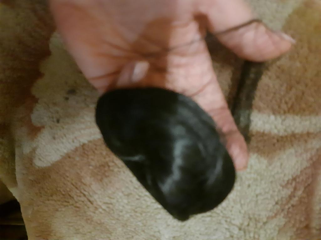 The hair seems to be natural, but it is not clear how to hold it