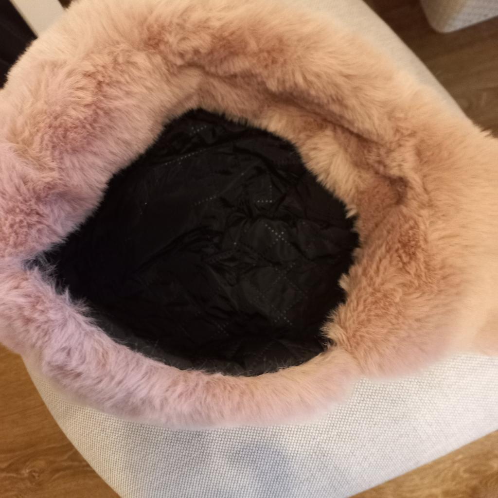 Fits true to size. Nice. Looks like rabbit fur.