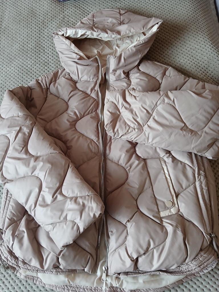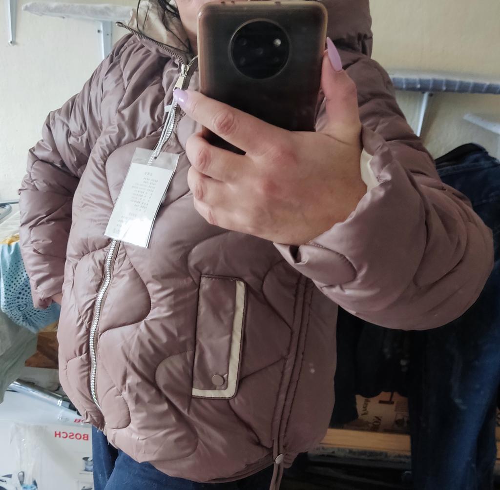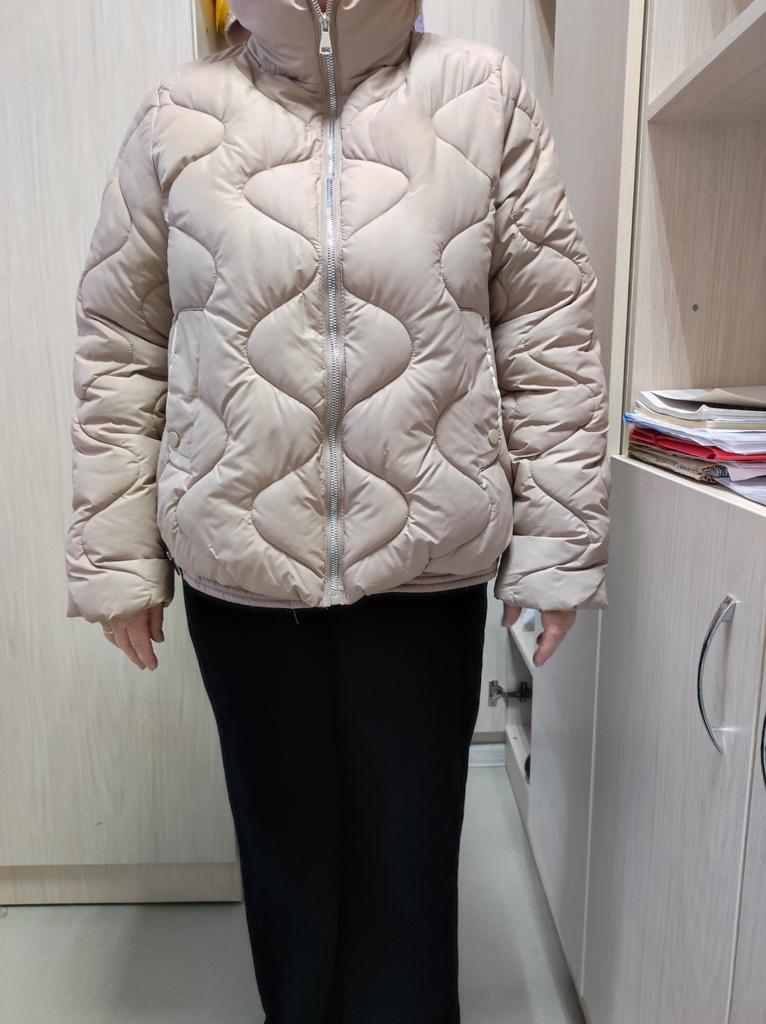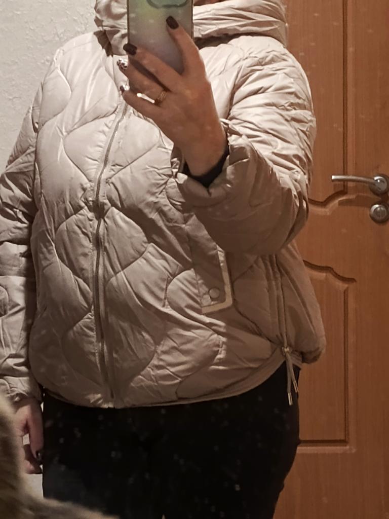 The jacket is stylish, as in the photo, warm, can be worn in warm winter, I wear size 48, fits loosely, can be worn with a warm thin sweater