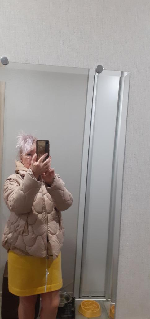 I was very afraid that the color of the jacket would not be the same as in the picture, but I printed the jacket out and put it on... Super!!! It looks great, the color is so nice, delicate, I am very happy!!! The size fits perfectly, not too tight and not too wide, just right. I will wear it with pleasure! I recommend it to everyone!