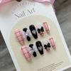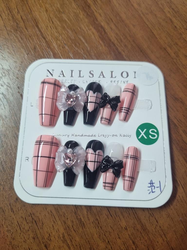 HANDMADE Blue Pink Commoner Plaid Bow Trapezoidal Artificial Nail Phototherapy Nails Reusable and Removable Nails