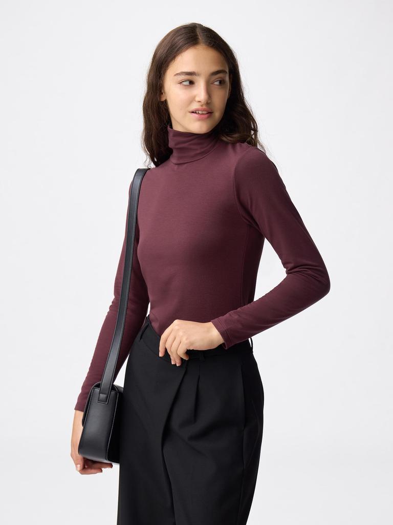 The GU Warm Extra Turtle Neck T-Shirt (long sleeve) maximizes warmth with a soft material texture. This product is made in Japanese sizes, providing a comfortable fit.