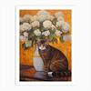 Vintage Bouquet Flower Lotus Lilies With A Cat Art Nouveau Klimt Style Art Print Poster Canvas Painting Wall Picture Room Decor