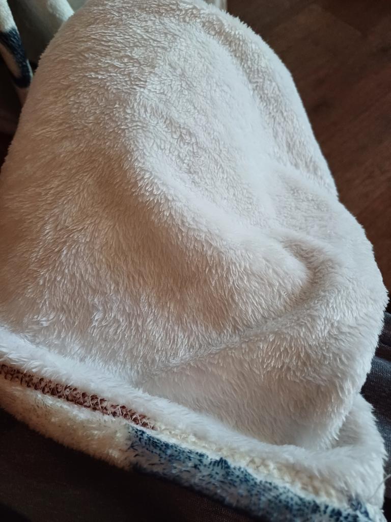 It's big and cozy. A great gift for the New Year! I took the photo after washing, the blanket fluffed up and did not lose its shape, on the contrary, all the seams were smoothed out. I definitely say, respect!