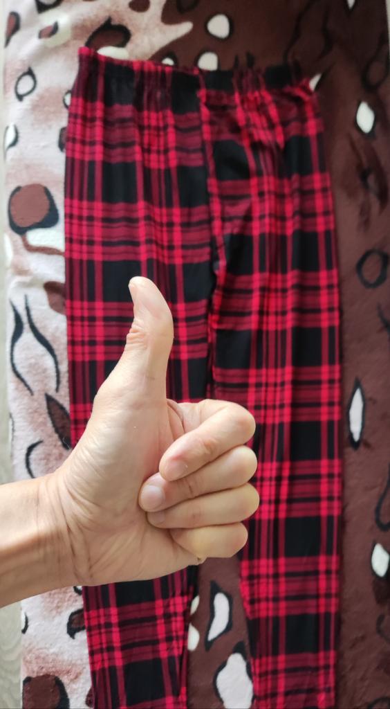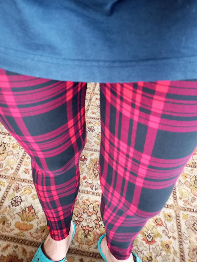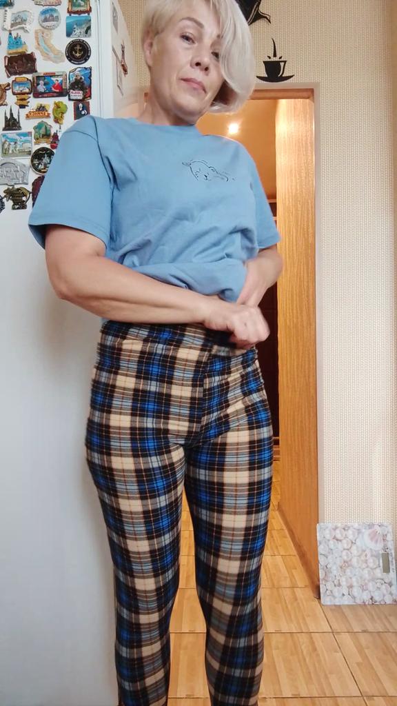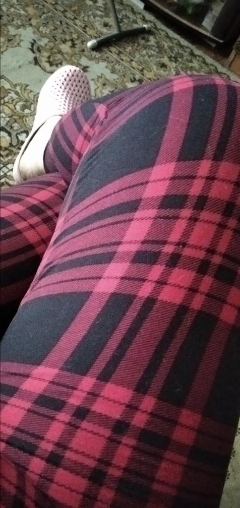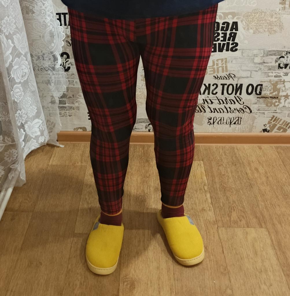 The only downside of these leggings is that they roll up. I thought about combining them with dresses in the spring, it's a pity. But otherwise they are soft, pleasant, bright, the check is not too garish