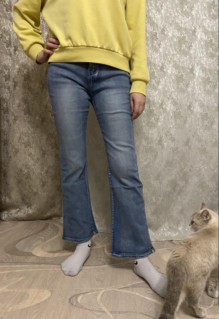 Good jeans, they stretch, comfortable, thin, fit the figure well. Thank you. At sizes bust 86, hips 106 a little loose. But for colder weather you can wear warm tights underneath.
