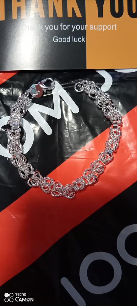 Beautiful bracelet. It is not clear what metal it is made of. For this price it is wonderful.