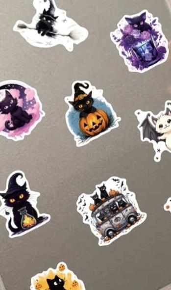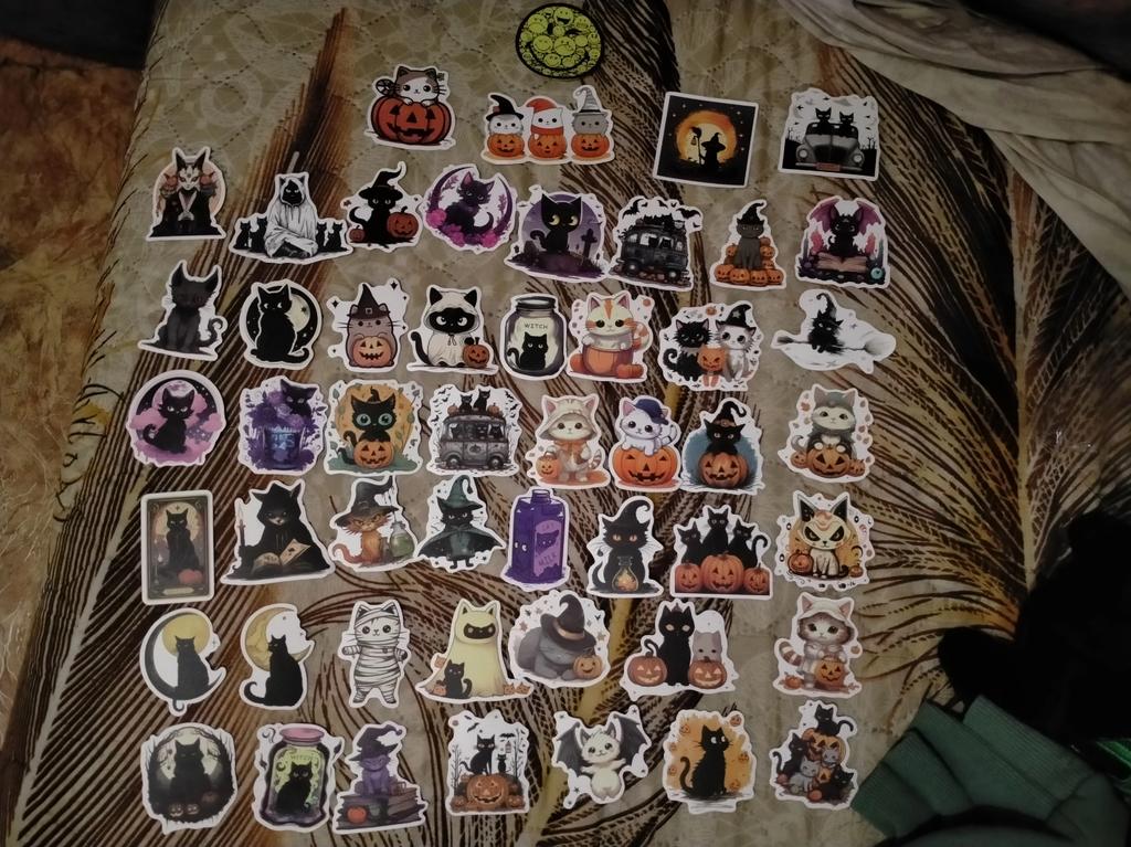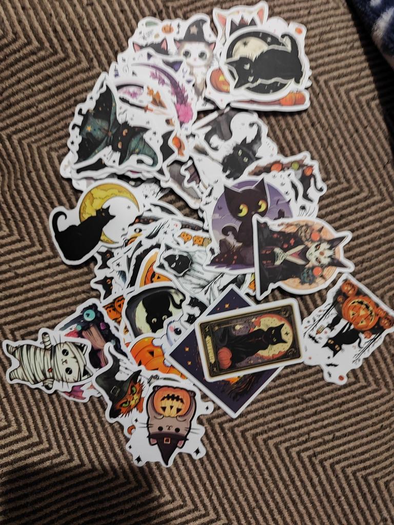 10/50PCS Halloween Cat Stickers Witchy Gothic Black Cat Witch Moon Tarot Boho Halloween Cute Stickers Scrapbook Bottle Phone Graffiti Sticker