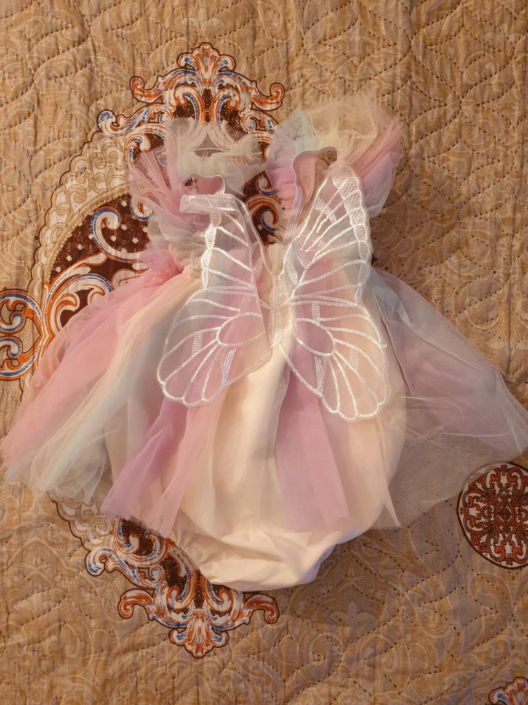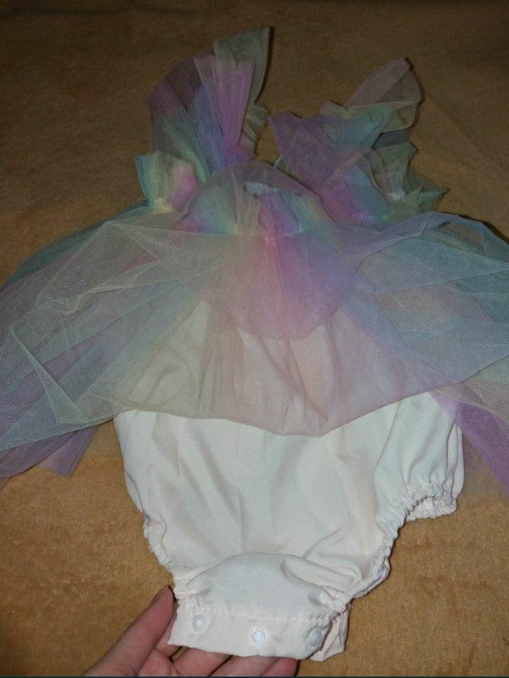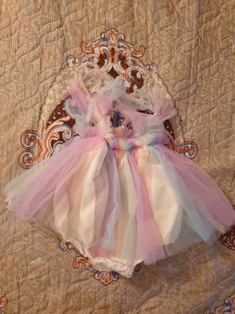 Infant Girl Rompers Dress Embroidery Butterfly Wing Fly Sleeve Rainbow Color Tulle Skirt Hem Jumpsuits Clothes Baby Bodysuits