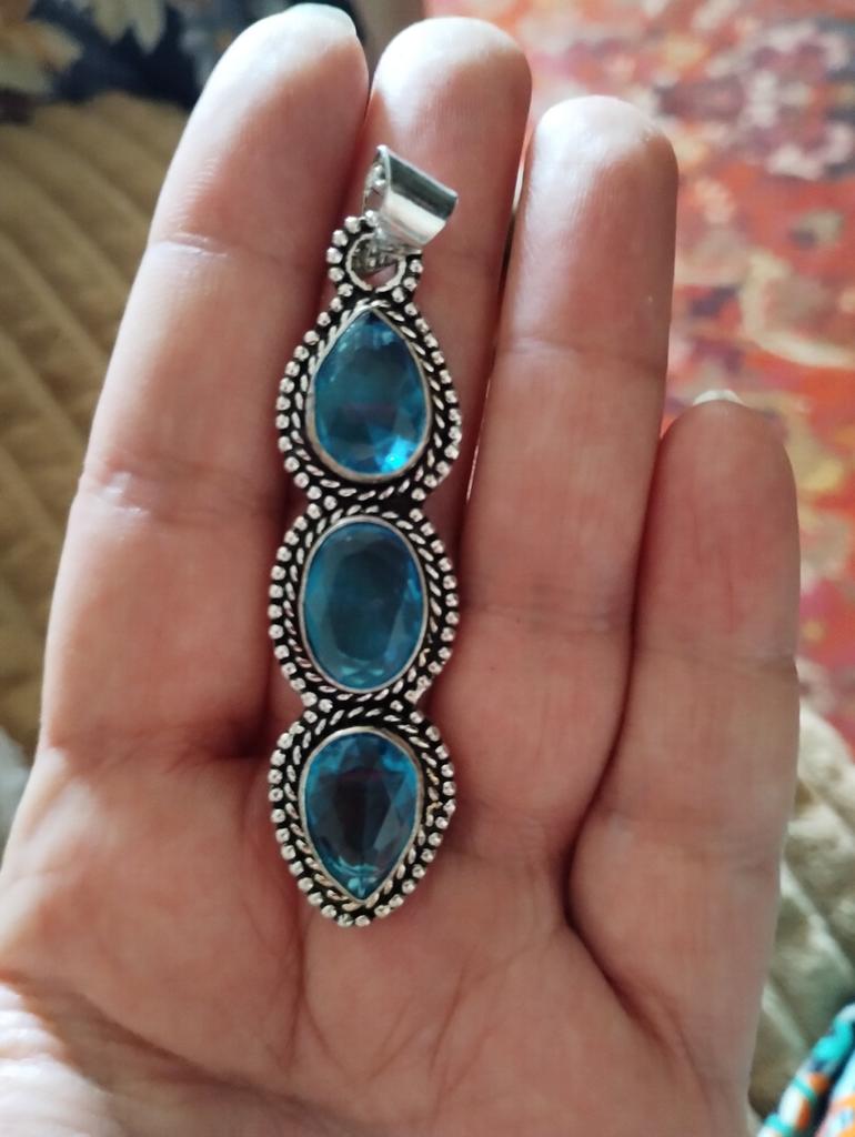 Beautiful Swiss Blue Topaz Gemstone Handmade 925 Sterling Silver Jewelry Pendant