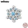WOSTU 925 Sterling Silver Snowflake Charm Beads Ice Flower Pendant Fit Original Bracelet DIY Necklace Jewelry Making Gift