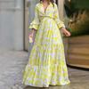 Summer New Europe and The United States Women's Printed Deep V-neck Flared Sleeve Oversized Hem Dresses