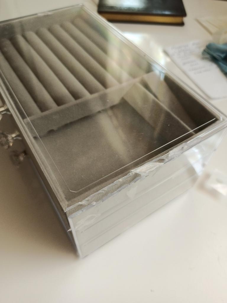 Just a slight impact on the transparent base at the bottom right