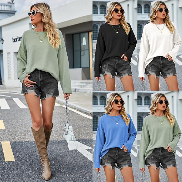 Autumn and Winter Women's Sweater Hundred Solid Color Loose Bottom Knit Sweater Pullover Sweater