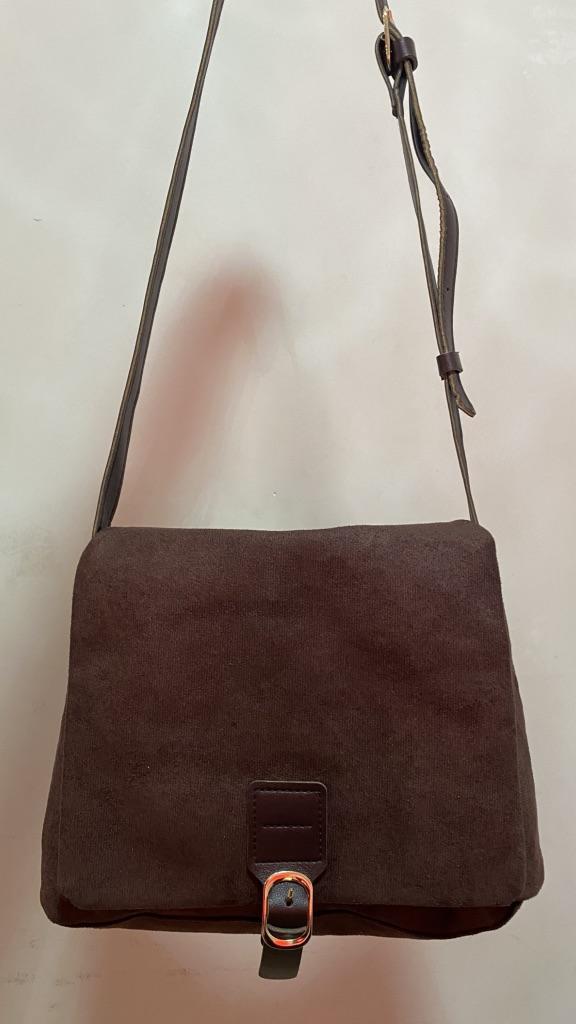 For such a price, the bag is okay, don't expect wow! There are no pockets, only a hidden one inside, it's fabric, not suede