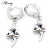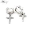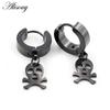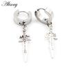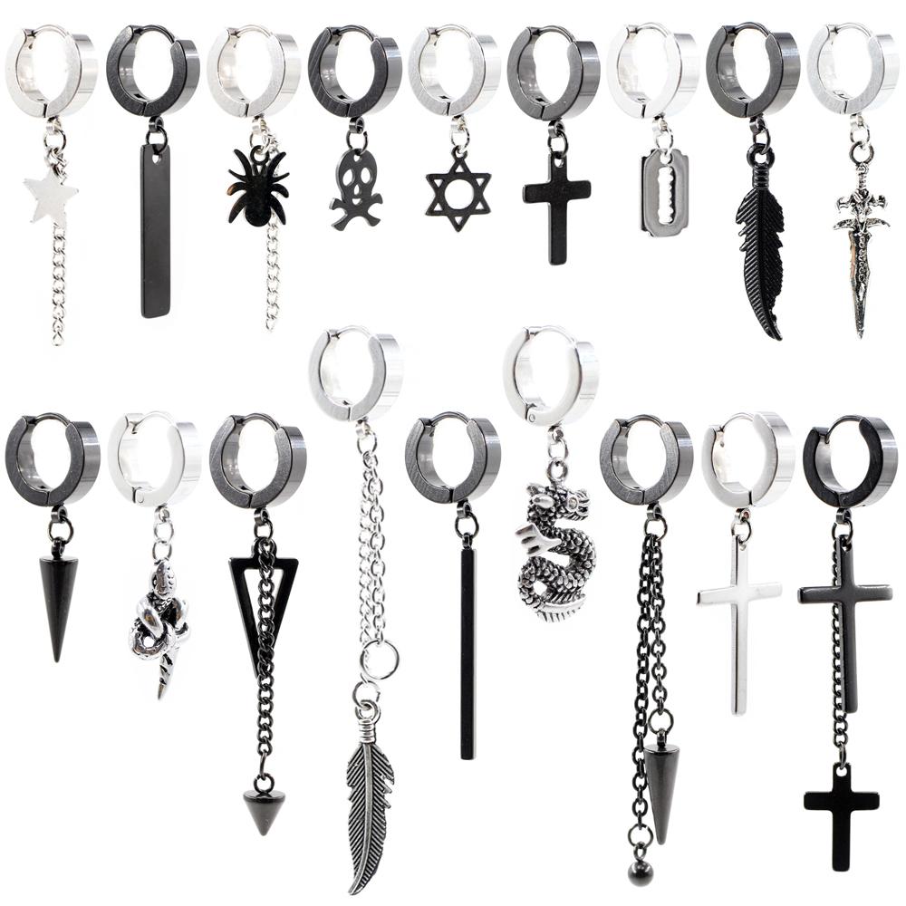 Alisouy 2PCS Stainless Steel Star Cross Snake Spike Skull Sword Blade Chain Feather Spider Dangle Women Men Huggie Hoop Earrings