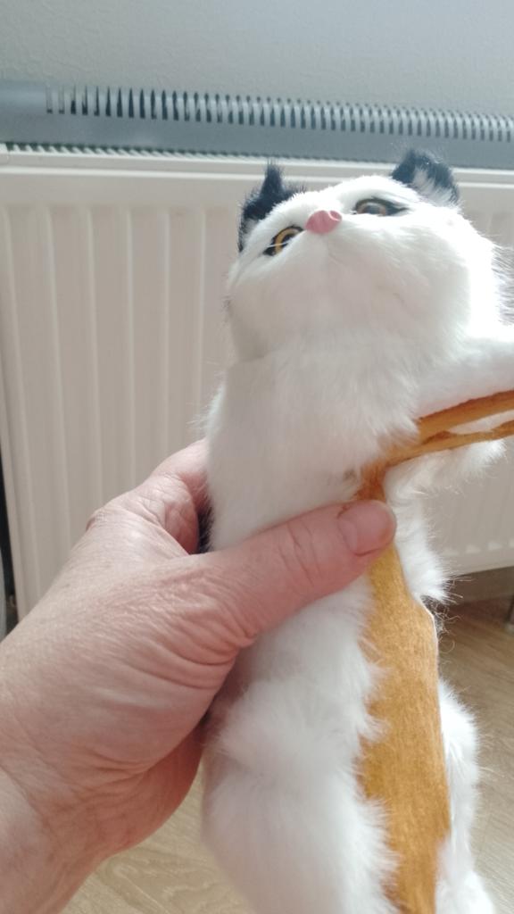The cat is so dear to me that I can't stand it anymore. And besides everything, it looks exactly like my 17-year-old cat, who is not very excited about the toy.
