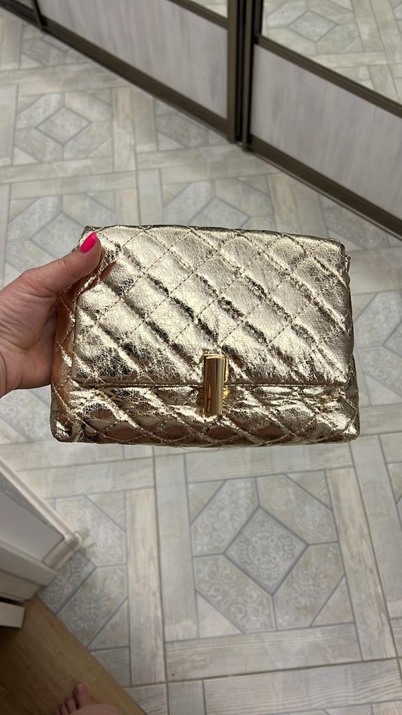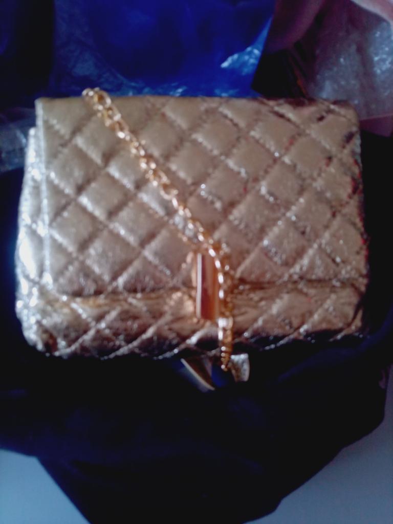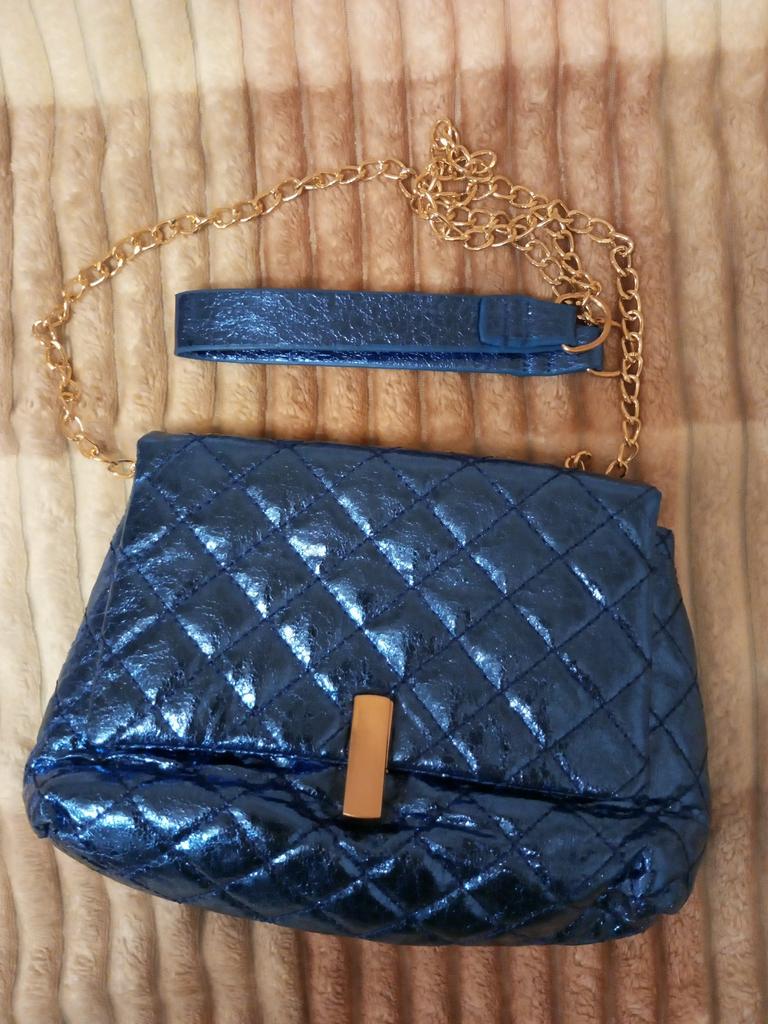 Adorable but very small quilted bag with its pretty 120 cm shoulder strap. 👍💋 The clasp works perfectly and the interior is lined with synthetic fabric. 💙💞