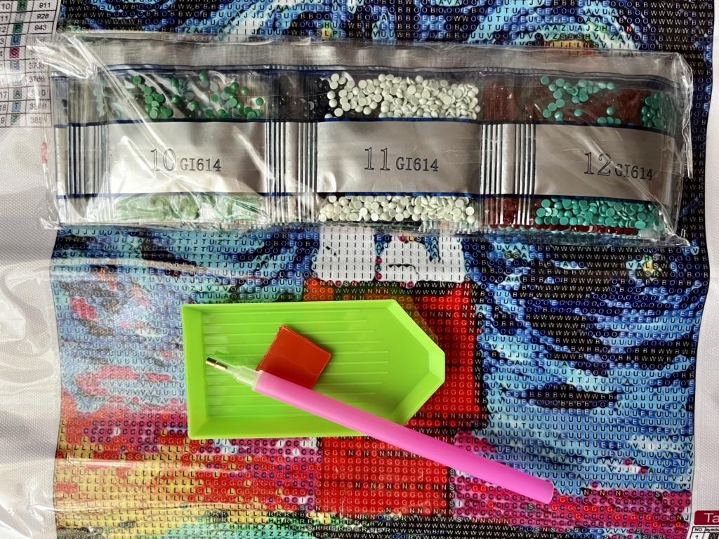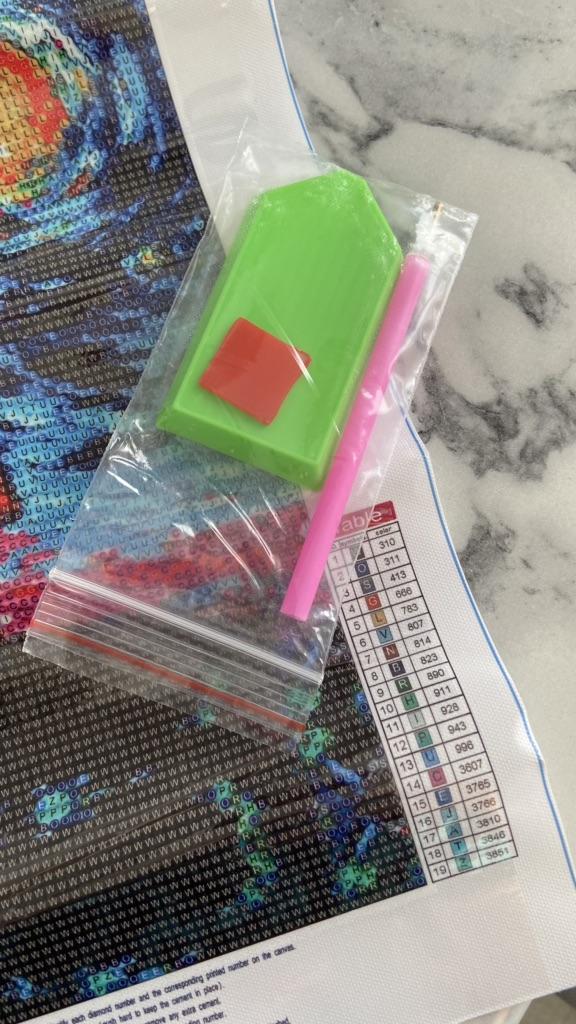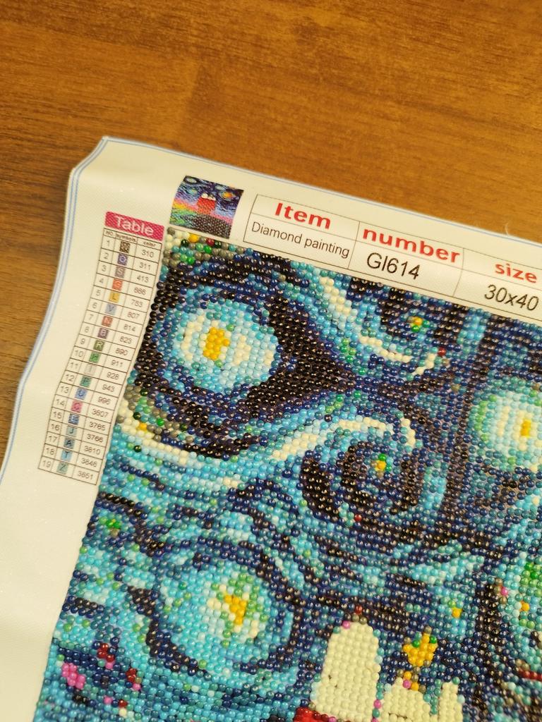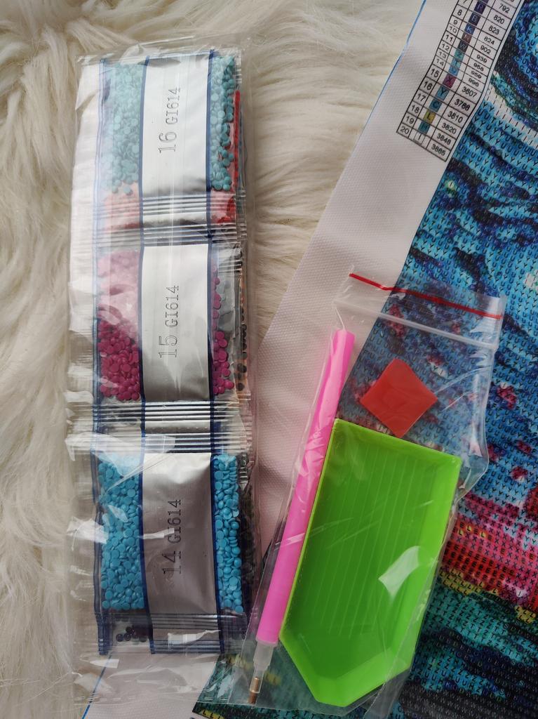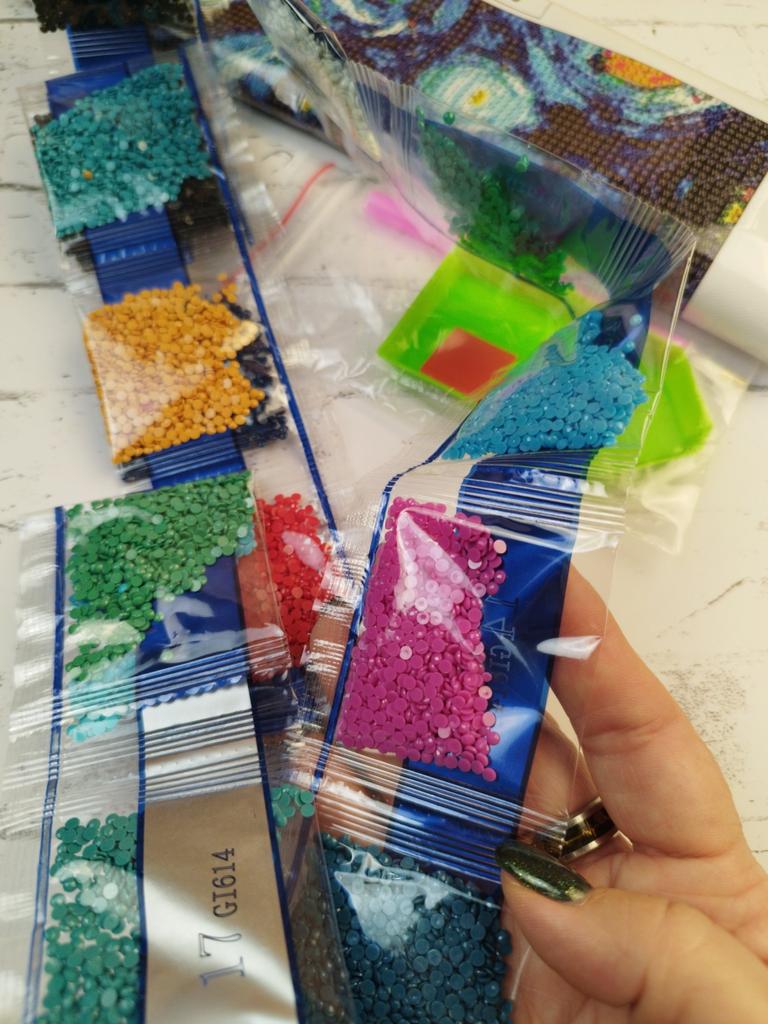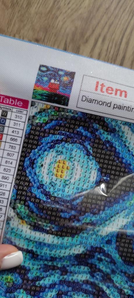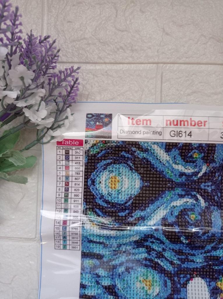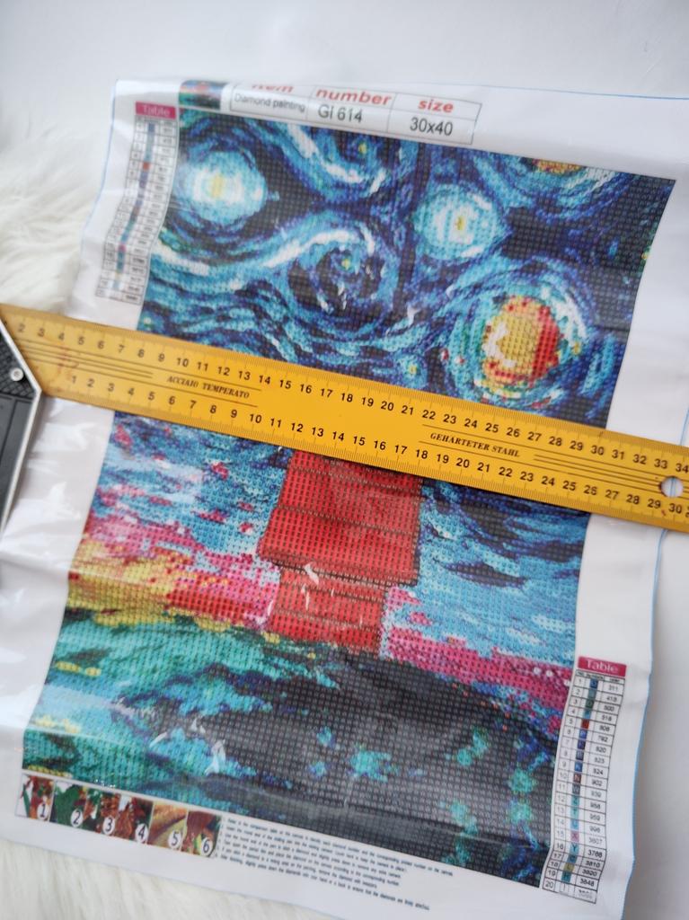 Diamond mosaic. Size 30*40 The painting is inspired by the works of Van Gogh and the cartoon about Snoopy the dog. An interesting combination ☺️ Probably this mix was the main reason for choosing this particular picture for creativity. I also decided to join the cohort of diamond mosaic lovers. The set includes: 💙 Canvas is an adhesive base-canvas on which we will lay out our rhinestones. The canvas is protected by a transparent film, which I advise you to remove gradually during the process of laying rhinestones 💎. 💙 Numbered bags with colored rhinestones. 💙 Plastic tray for rhinestones. 💙 Stylus. (Pencil with which we capture the rhinestones and transfer them to the canvas). 💙 Glue. A flat square piece of substance with which we fill the tip of our stylus. Before starting work, it is advisable to straighten and level the canvas. If the information was useful, put it as a favorite ❤️😘 I received the goods in 38 days in a combined package 🚚 The track was tracked completely. The arrival at the point of issue was announced by sms 📲. Packaging: bubble bag and individual packaging. The canvas is twisted into a roll. Everything arrived intact. Goods without defects and defects, without foreign odor. Happy shopping and fast deliveries to everyone 🛍️☺️🚀🌟
