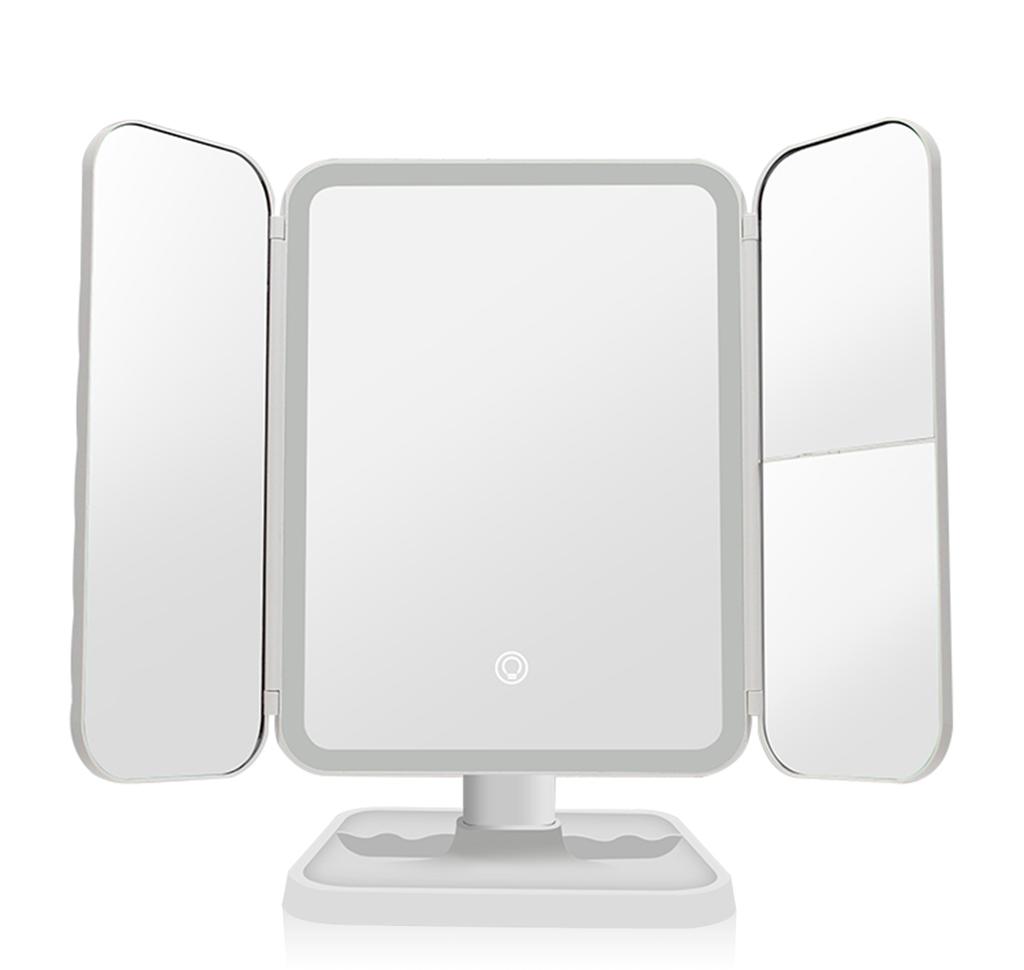 LED Trifold Makeup Mirror +2X +3X Magnification 3 Adjustable Color Temperatures Stepless