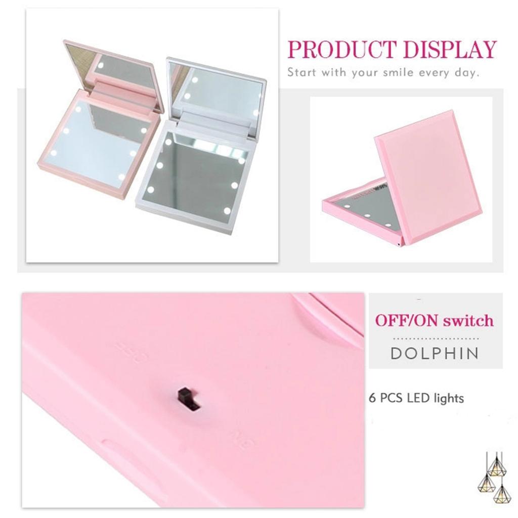 Mini LED Makeup Mirror Folding Portable Makeup Mirror with 6 LEDs Doublesided Cosmetic Mirror