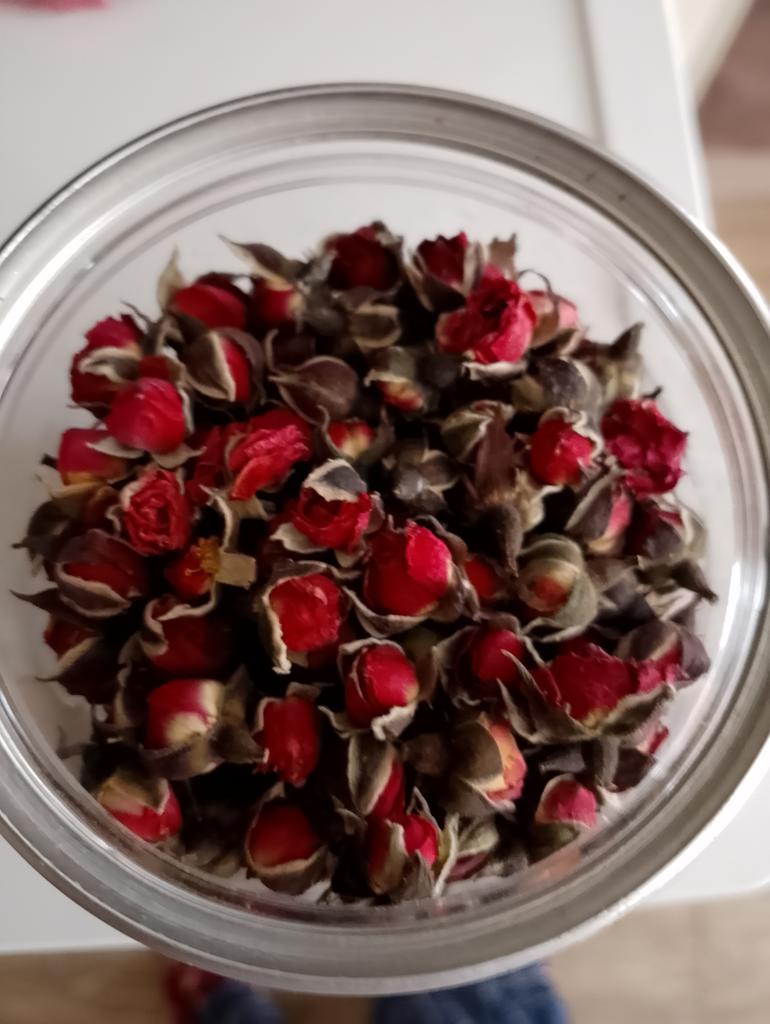 It smells like a rose. I hope it will be a tasty tea. I poured it into a jar.