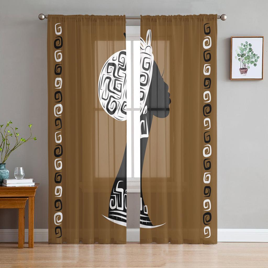 African Woman Tulle Curtains for Living Room Printed Sheer Voile Curtain for Bedroom Window Screening Drapes Blinds Home Decor