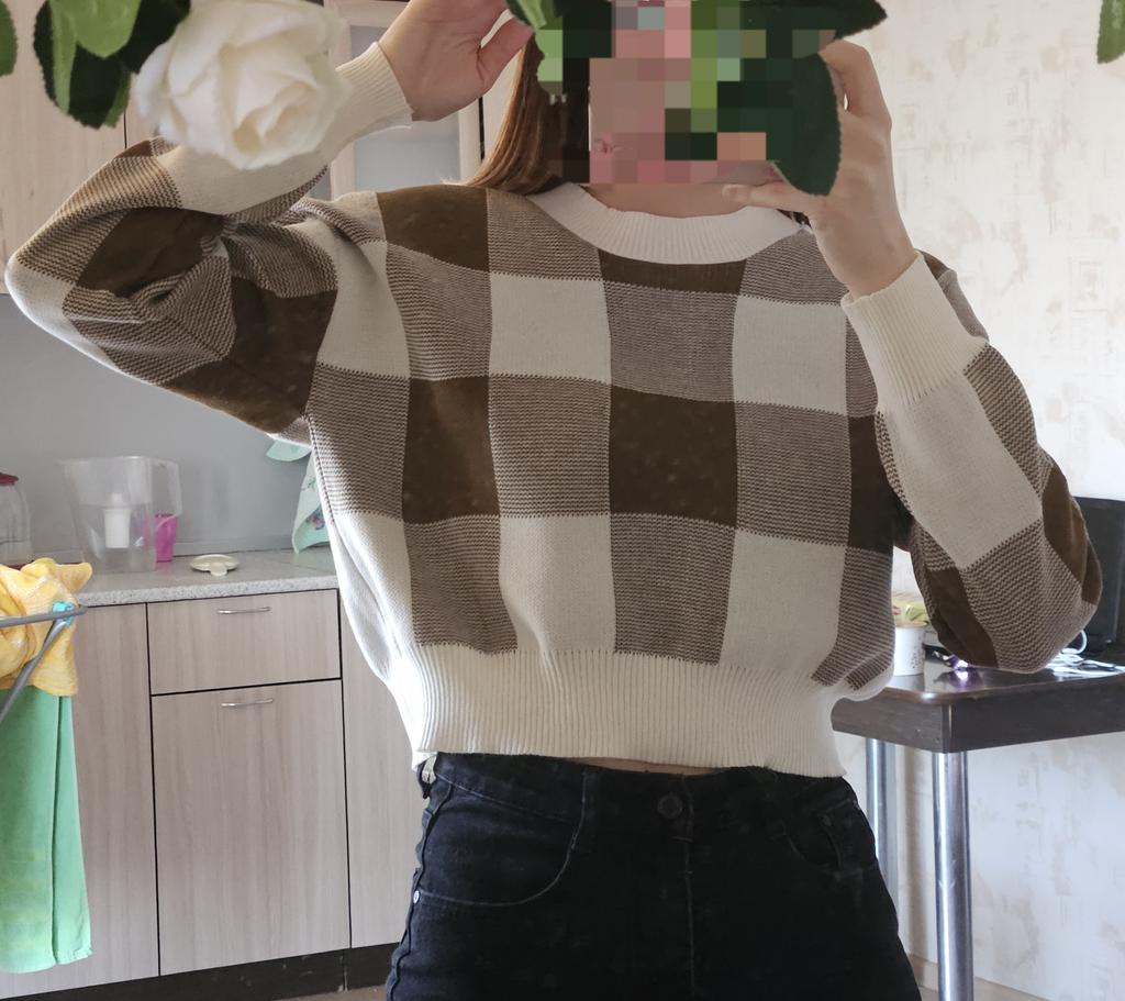 Cropped Sweater Korean O-neck Plaid Printing Preppy Style Pullover Women Sweet Sweaters For Student
