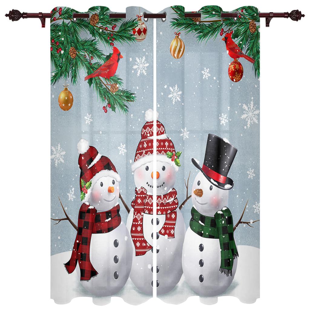 Christmas Tree Snowman Snowflake Window Curtains for Bedroom Luxury Kitchen Curtains Living Room Christmas Curtains