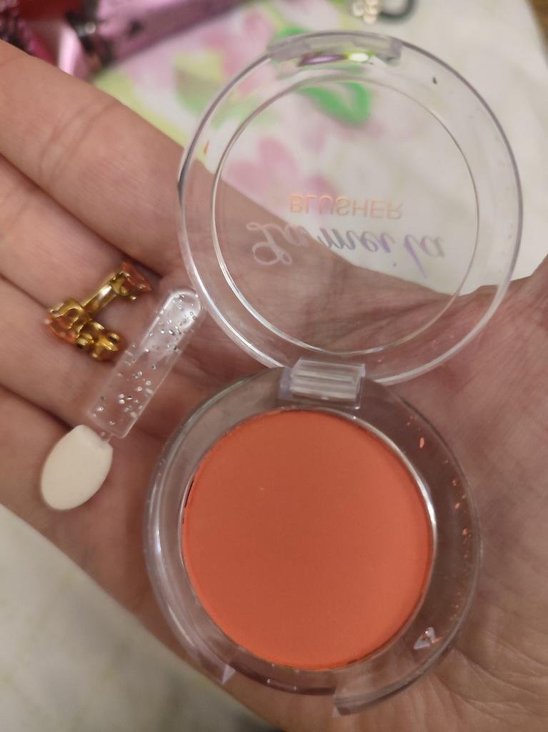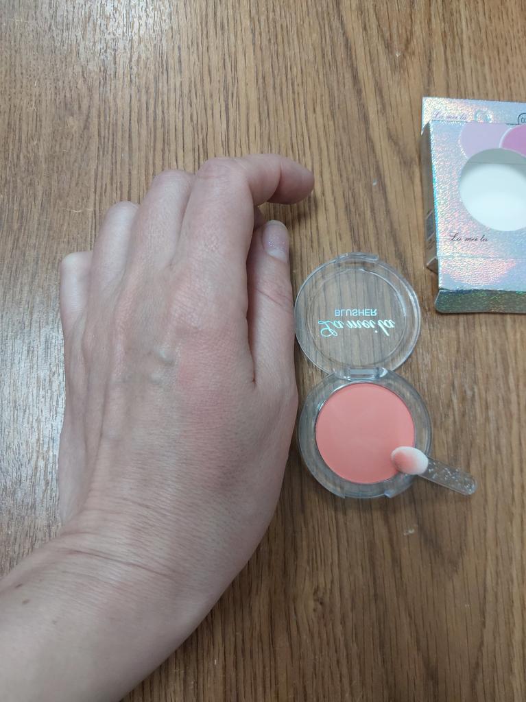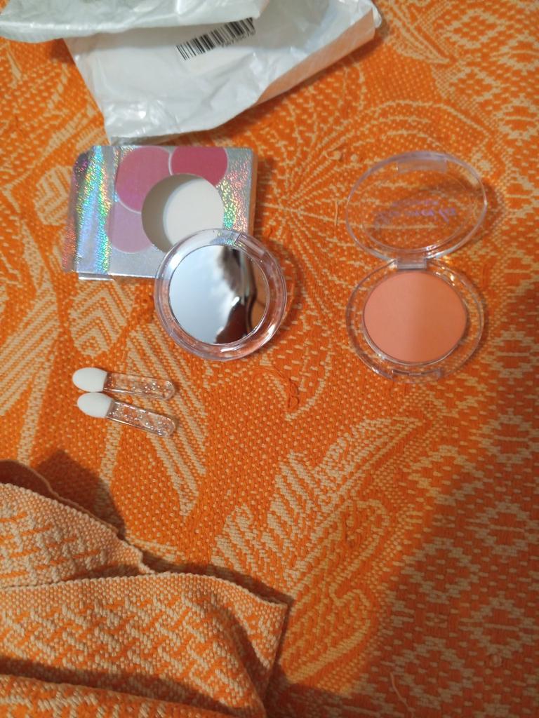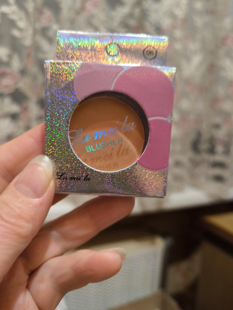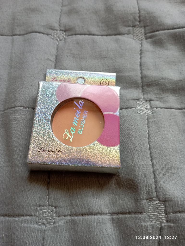 The parcel went to Kiev in 26 days. I received it on time: within the last deadline. It's good that the parcels are combined. The blush, although saturated, is not so bright on the face. The blush itself does not flow, the brush for application is not at all for its intended purpose, rather it is for applying shadows under the eyes. I changed it to my own. There is a mirror behind the box. Thank you to the seller for the goods and Joom for good logistics.