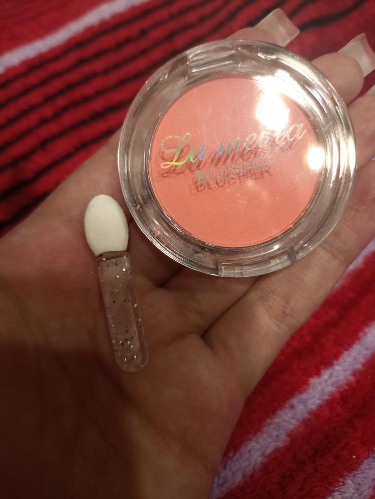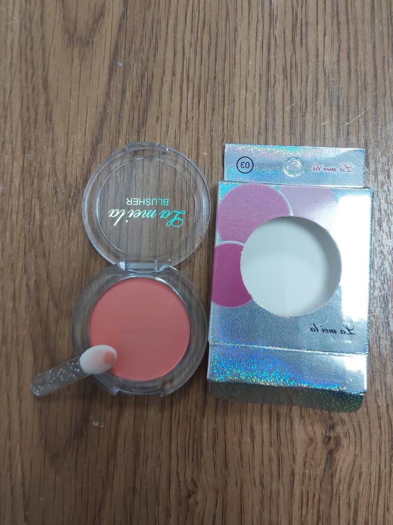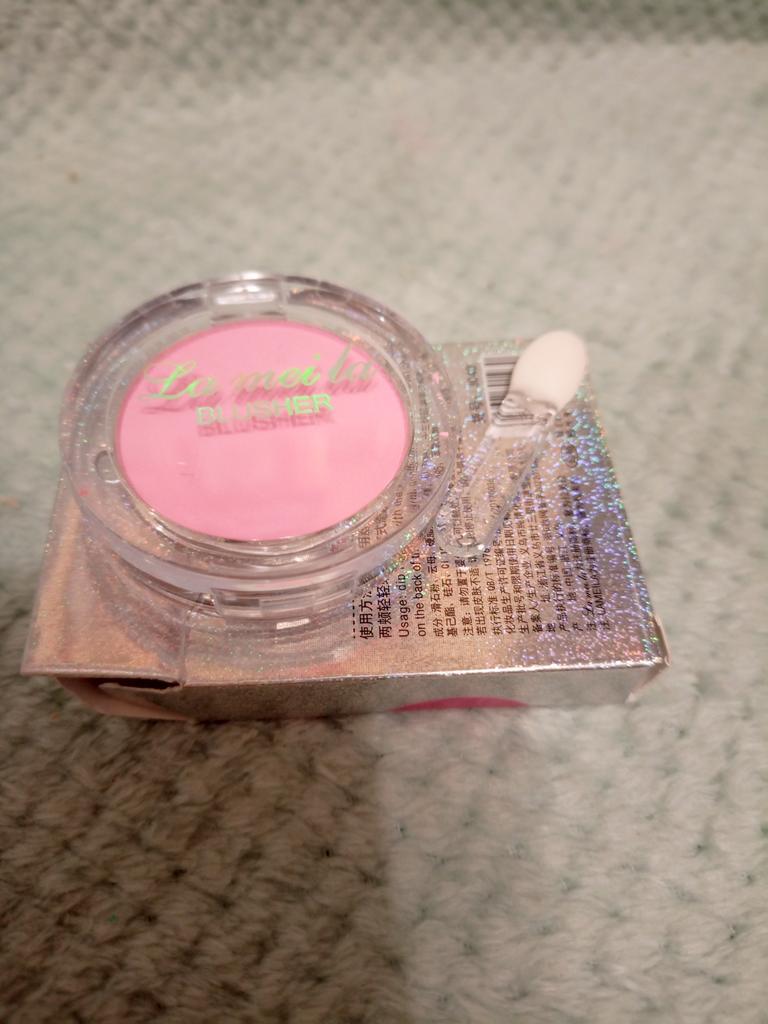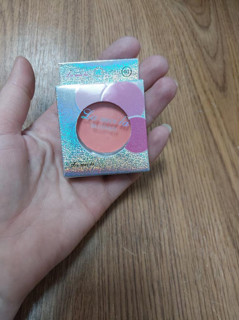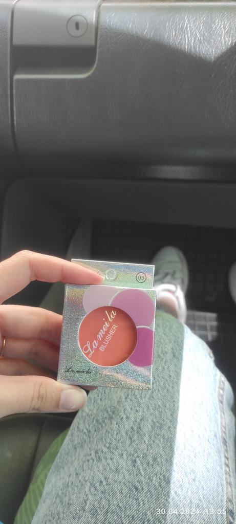 The parcel went to Kiev in 26 days. I received it on time: within the last deadline. It's good that the parcels are combined. The blush, although saturated, is not so bright on the face. The blush itself does not flow, the brush for application is not at all for its intended purpose, rather it is for applying shadows under the eyes. I changed it to my own. There is a mirror behind the box. Thank you to the seller for the goods and Joom for good logistics.