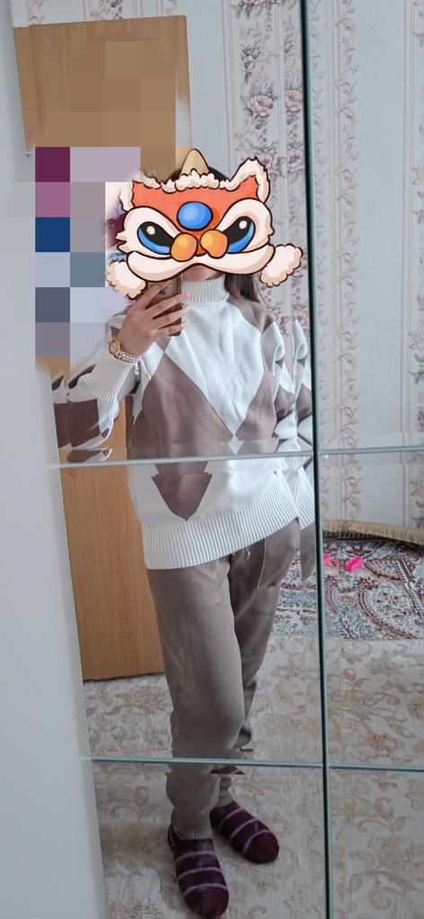 The suit is good, soft, the top is a bit short, the trousers are tight.