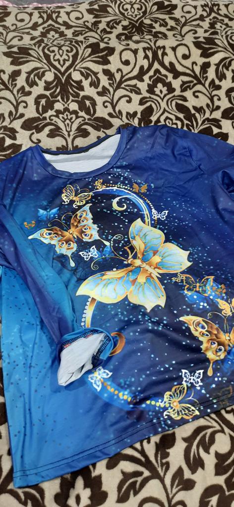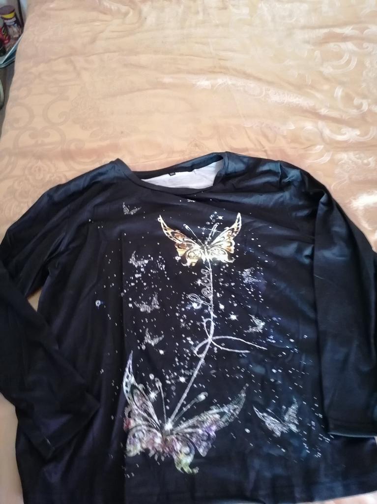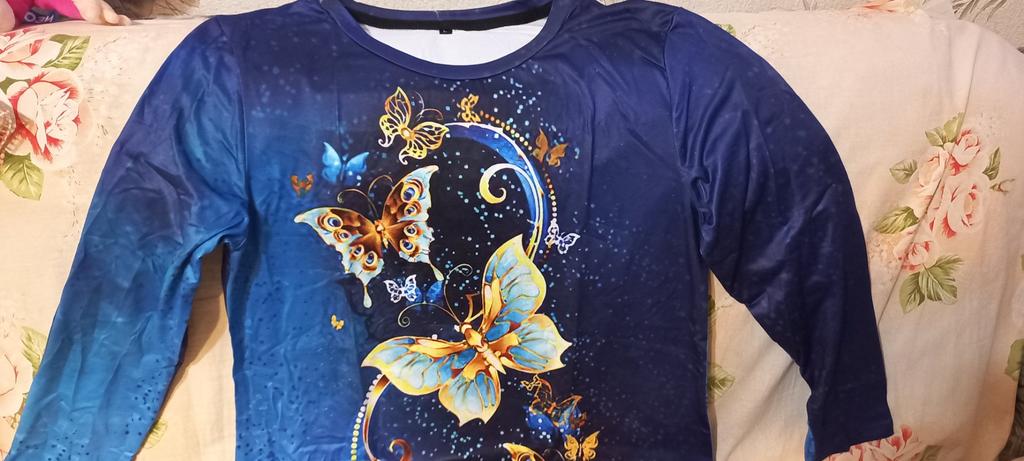 Rubbish. In the picture, the butterflies are shiny, in reality they are dull, all in spots. The collar is gathered - doesn't look good. A waste of money. A terrible blouse only for the trash. How can anyone like this