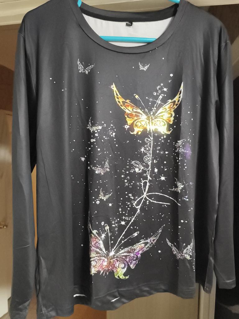 Autumn Women's New 3d Sweater T-shirt Pullover Long-sleeved Gradient Butterfly Pony Harajuku Style Large Loose Clothing