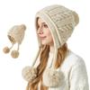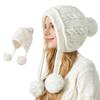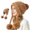 Women's Winter Thick Ear Protecting Three Hair Ball Rabbit Hair Knitted Hat Outdoor Riding Warm Hat