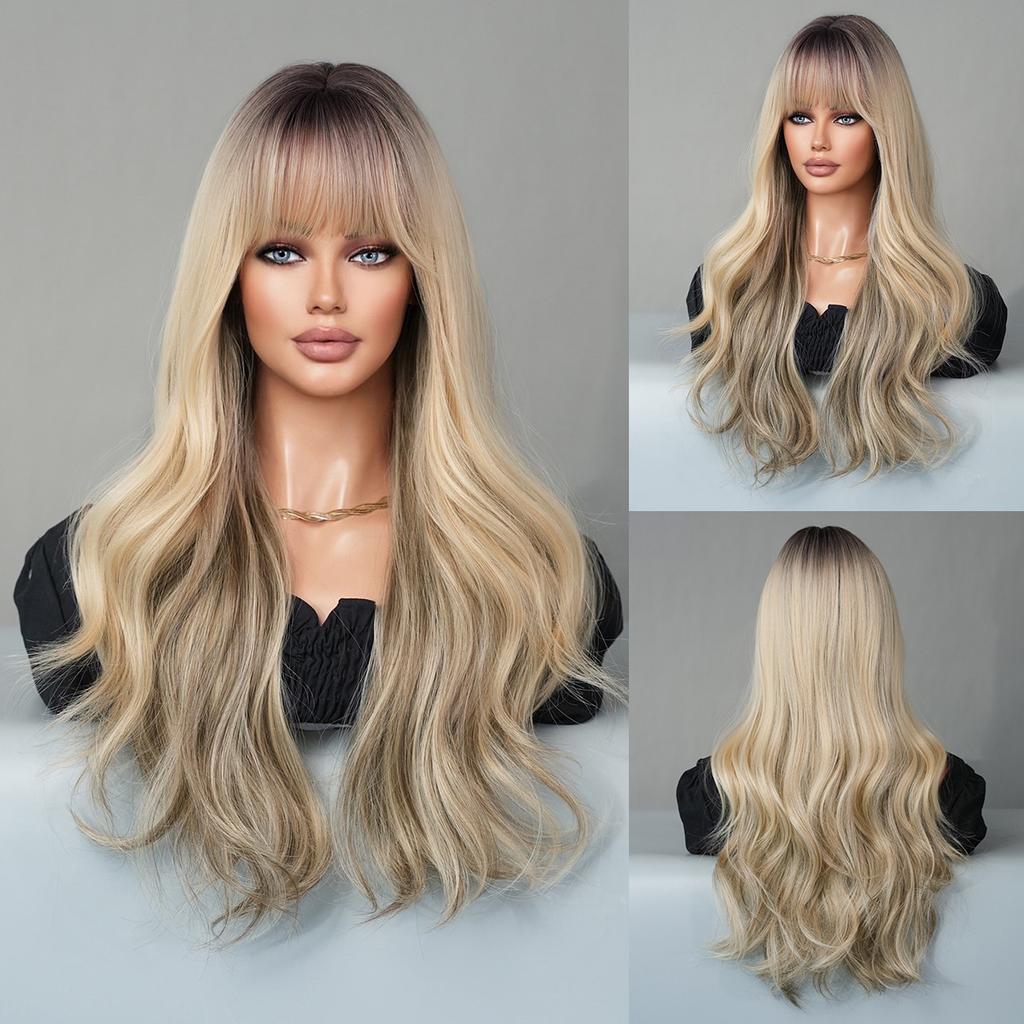 Women's Simulation Wig 67cm Hair Golden Wig Long Curly Wig Full Headgear Rose Hair Net Headdress Beauty Decoration Wig