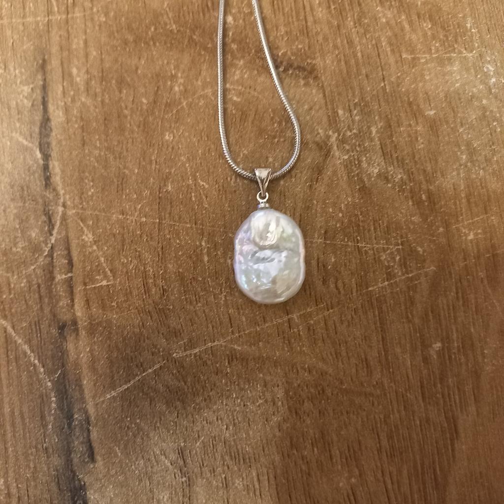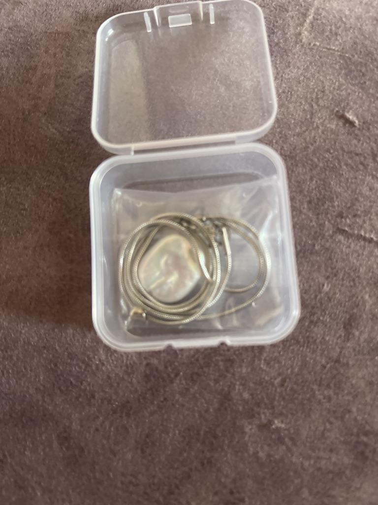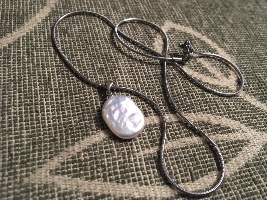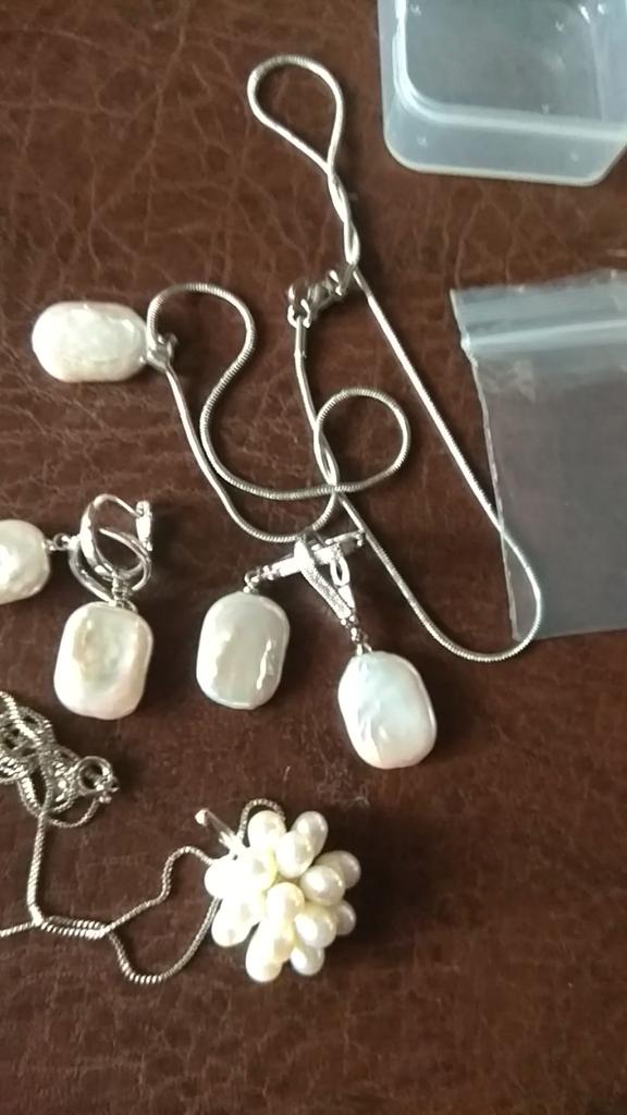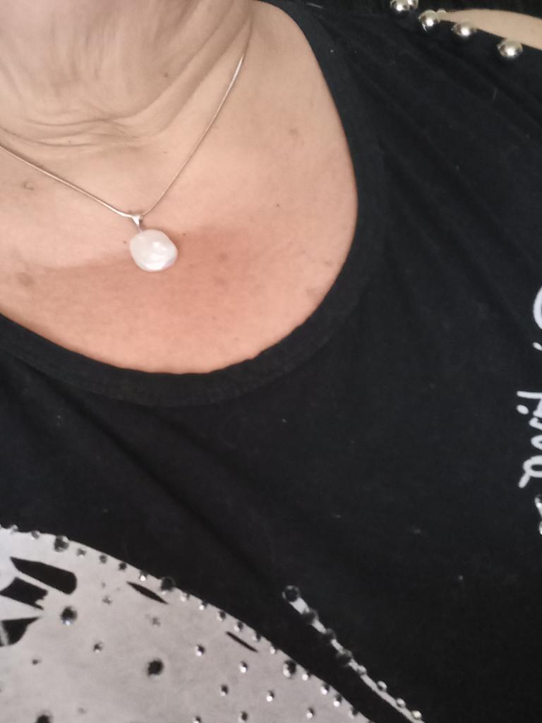 The pendant came in an individual plastic box. The set includes a 40 cm chain, outwardly similar to steel, without samples. The pendant is noticeable in size (about 1×1.5 cm), each side of the pearl has its own texture. The coating looks like natural mother-of-pearl, although I'm no expert. In general, quite a decent thing for little money for every day. Thank you.