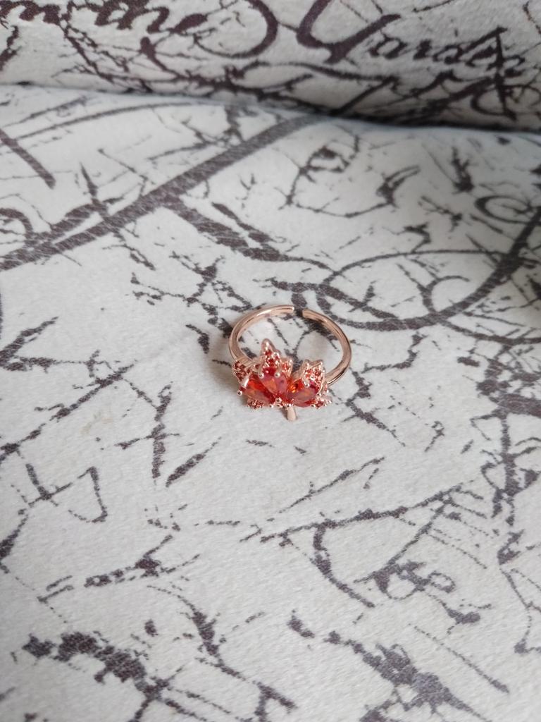Fashion Cubic Zirconia Leaf Red Maple Adjustable Rings For Women Wedding Elegant Rose Gold Color Jewelry Gift