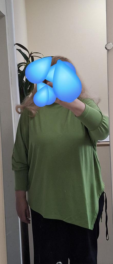 Very good tunic, thin knitwear, cozy, asymmetrical hem, batwing sleeve, tight cuff on the arm. looks interesting, will order in another color.
