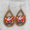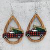 1 Pair of Christmas Holiday Ornaments Santa Bells Red Car Drops Wooden Earrings Christmas Ornaments