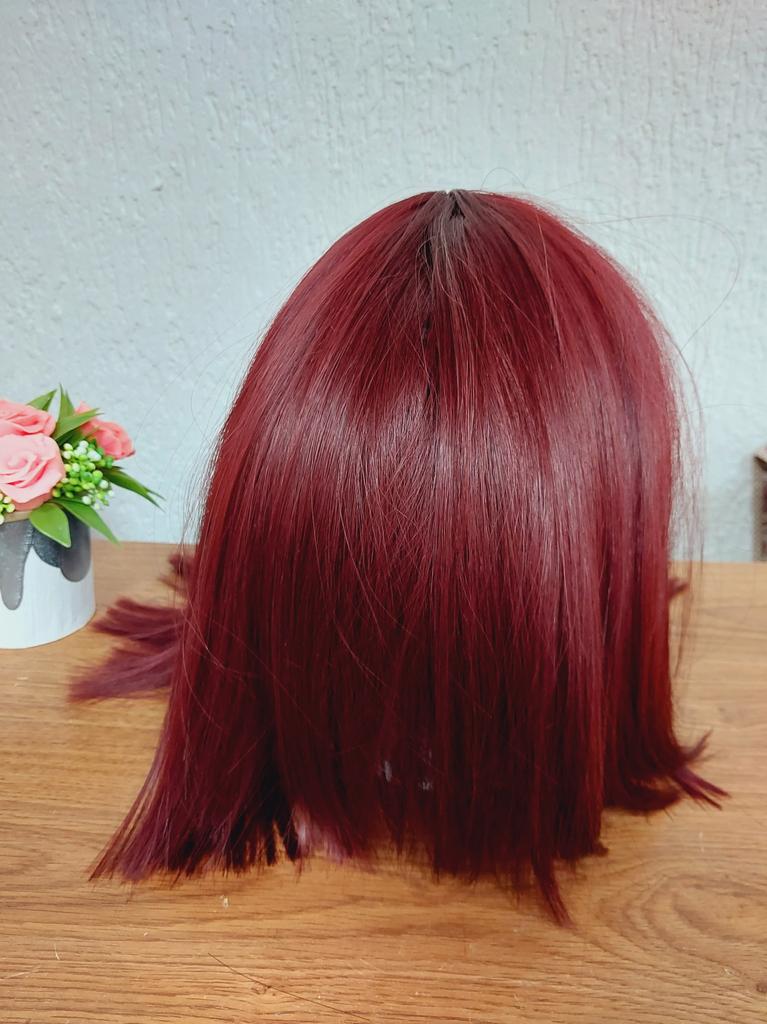 MISS WIG Natural Wine Red Synthetic Fiber Wigs Short Straight Wig with Bangs Wig Cosplay Daily Use Hair for Wome